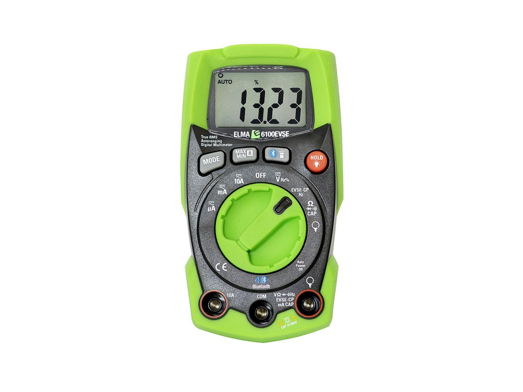 Elma 6100 EVSE je odolný (IP65), True RMS multimeter so zobrazením prúdu podľa striedy signálu na vývode Control Pilot nabíjacích staníc ako ho definuje IEC 61851. Vytŕča z radu bežných multimetrov možnosťou pripojenia ku vašemu smartfónu alebo tabletu pomocou Bluetooth komunikácie. Prístroj jednoducho a rýchlo zmeria prúd, napätie, frekvenciu, kapacitu, odpor a kontinuitu.