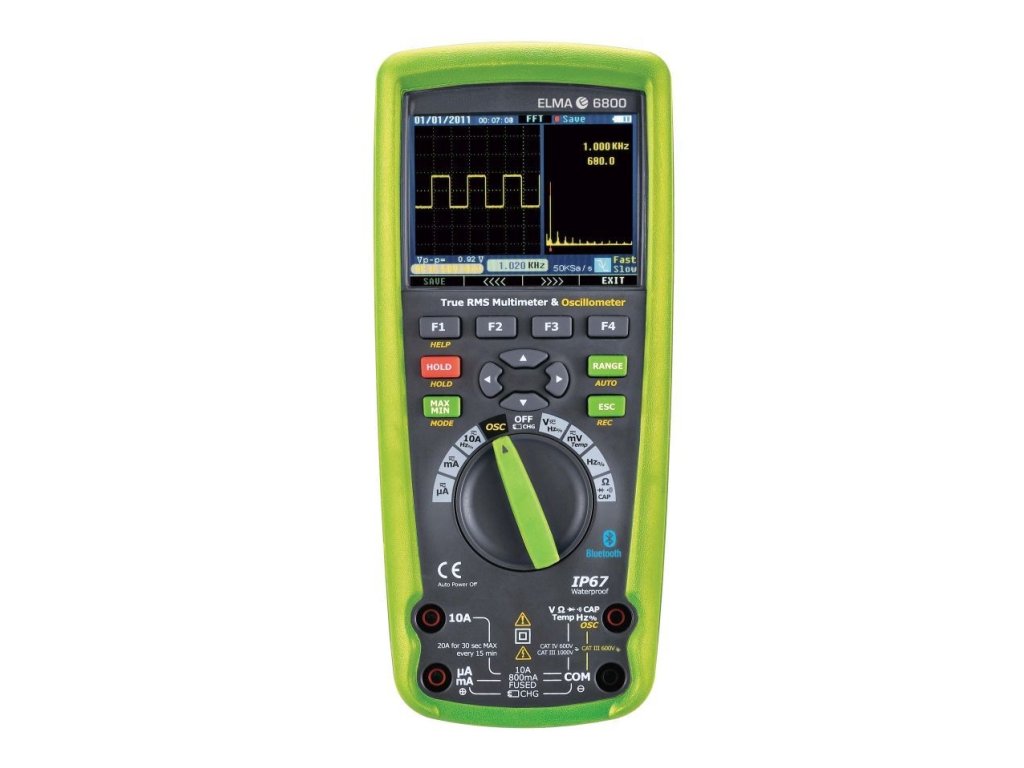 Elma 6800 je grafický multimeter s True RMS meraním a farebným displejom. Samozrejme, prístroj má všetky funkcie, ktoré očakávate od profesionálneho multimetra – ale Elma 6800 vám ponúka oveľa viac. Obsahuje aj osciloskop s meraním do 1000 V a záznamník údajov v tele s IP67.