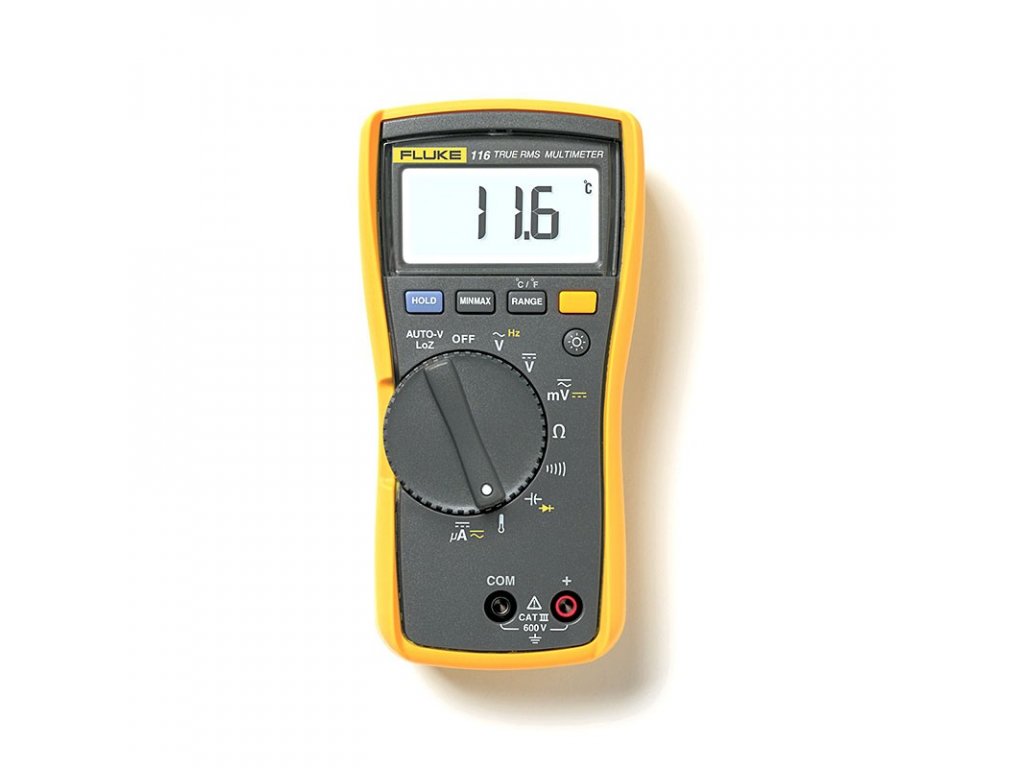 Fluke 116 je kompaktný True-RMS digitálny multimeter určený špeciálne pre profesionálov v HVAC (vykurovanie, ventilácia a klimatizácia). Tento multimeter je vybavený integrovaným teplomerom na meranie teploty a funkciou microamps na testovanie plameňových senzorov.