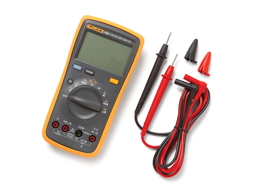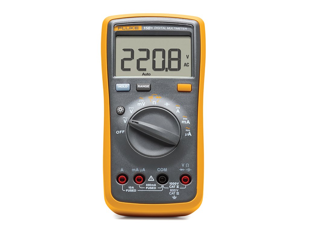 Fluke 15B+ je spoľahlivý digitálny multimeter určený pre bežné aj profesionálne merania. Meria AC/DC napätie až do 1000 V, prúd až do 10 A, odpor, kapacitu, kontinuitu a mnoho ďalšieho. Vďaka hodnote CAT III 600 V, veľkému podsvietenému displeju a robustnému prevedeniu sa hodí pre elektrikárov aj technikov v teréne.