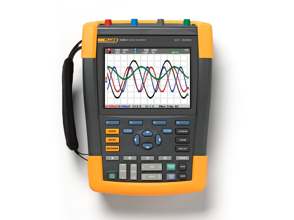 2 osciloskopické izolované kanály 200MHz a multimeter vstup 4mm od Fluke Biomedical