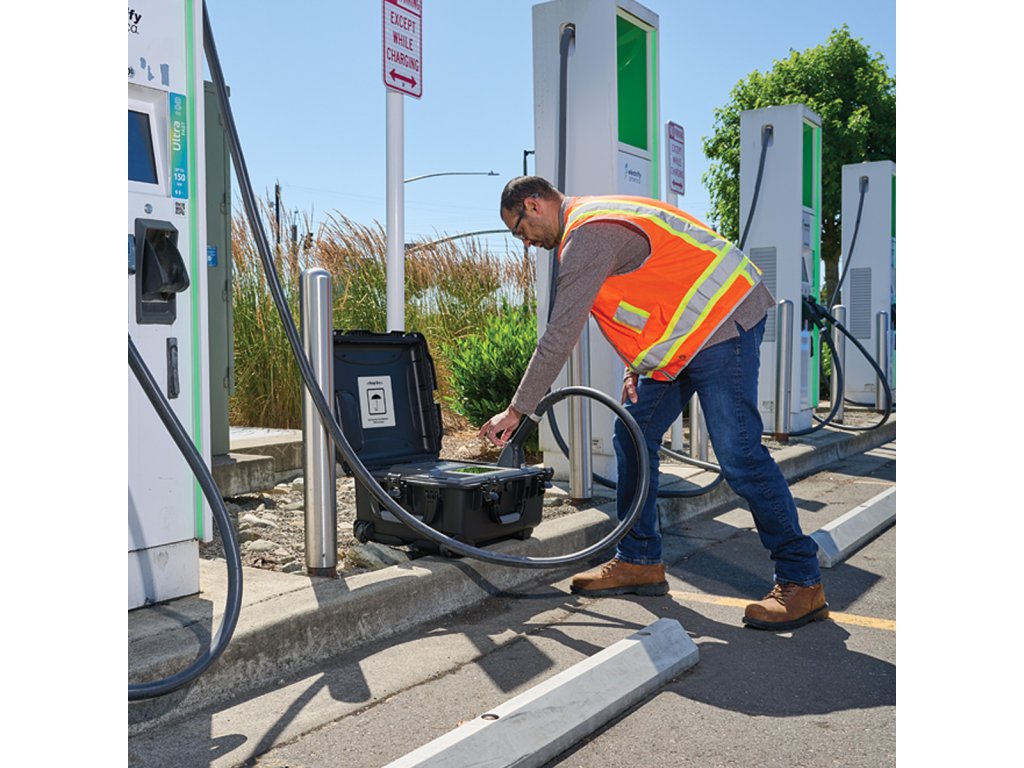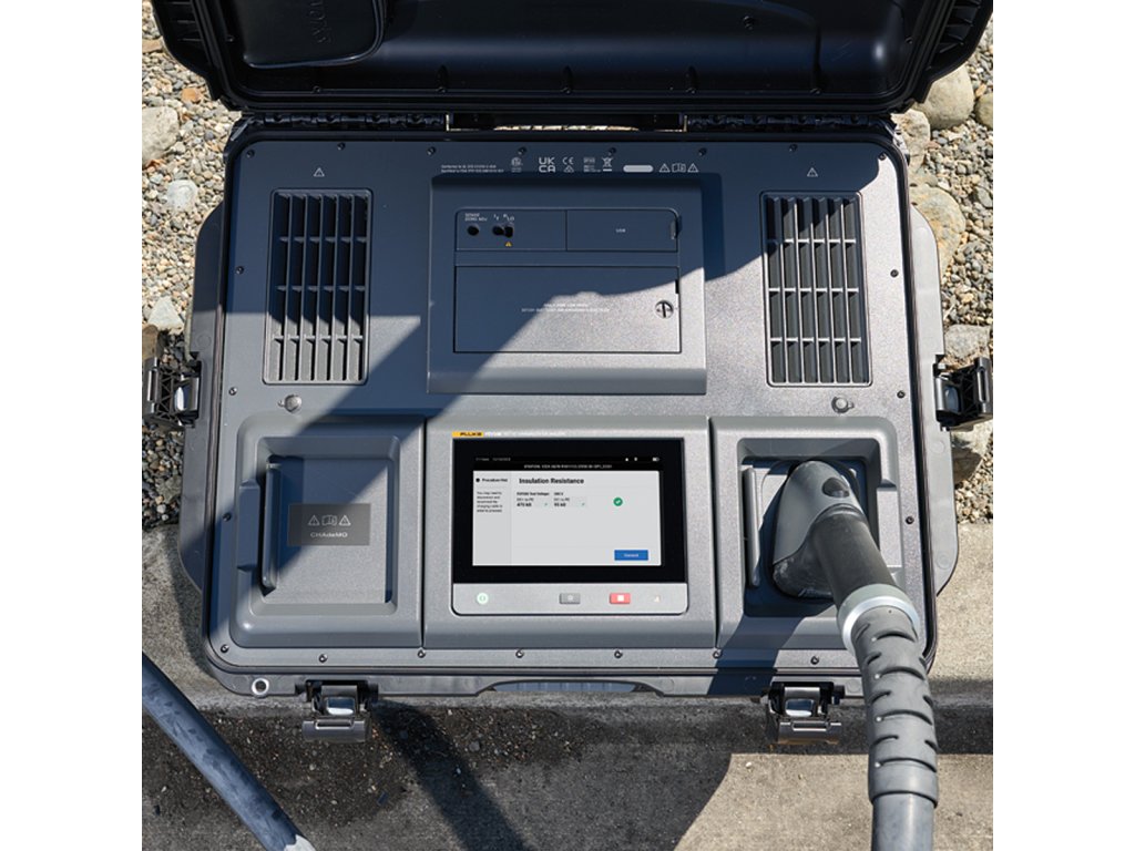 Zariadenie je navrhnuté pre prácu v teréne – je robustné, odolné a vybavené prehľadným displejom pre okamžitú interpretáciu stavov CP (Control Pilot). Umožňuje vykonávať kritické testy bezpečnosti, ako je meranie izolačného odporu DC okruhu a testovanie funkcie núdzového vypnutia. S Fluke FEV500 môžete validovať výkon nabíjačky, monitorovať stabilitu napätia a prúdu v reálnom čase a generovať profesionálne protokoly o skúške.