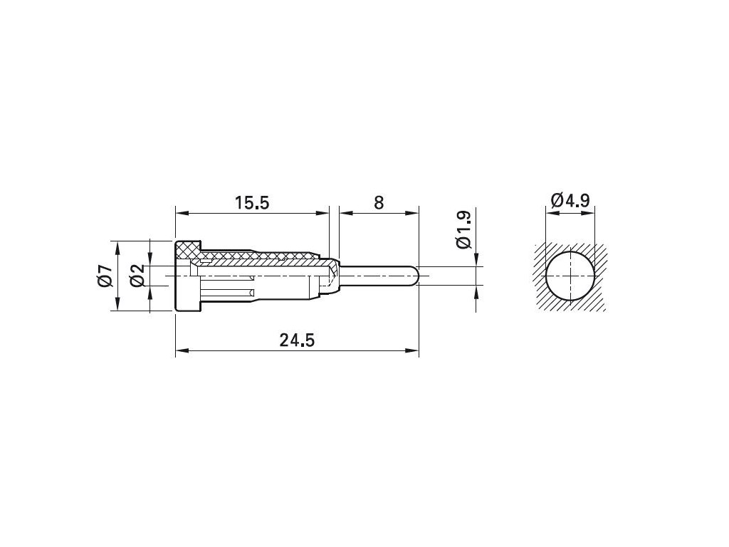 Insulated Ø 2 mm rigid made of machined brass. The socket is pressed into predrilled panels of plastic, metal etc.