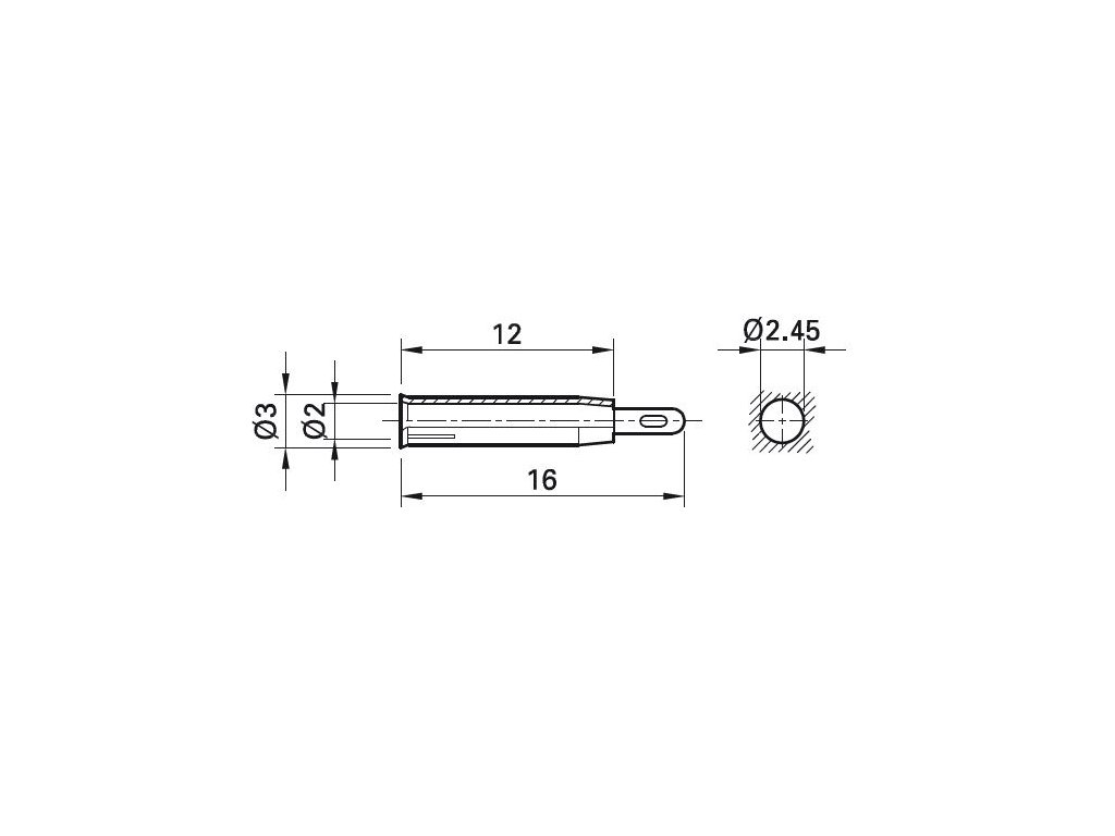 Uninsulated Ø 2 mm rigid, made of rolled brass sheet. Mounting by pressing or soldering into holes drilled in printed circuit boards or housings. Solder connection.