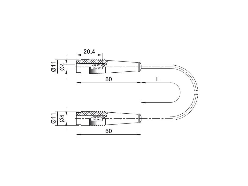 Highly flexible, with Ø 4 mm rigid sockets on both ends.