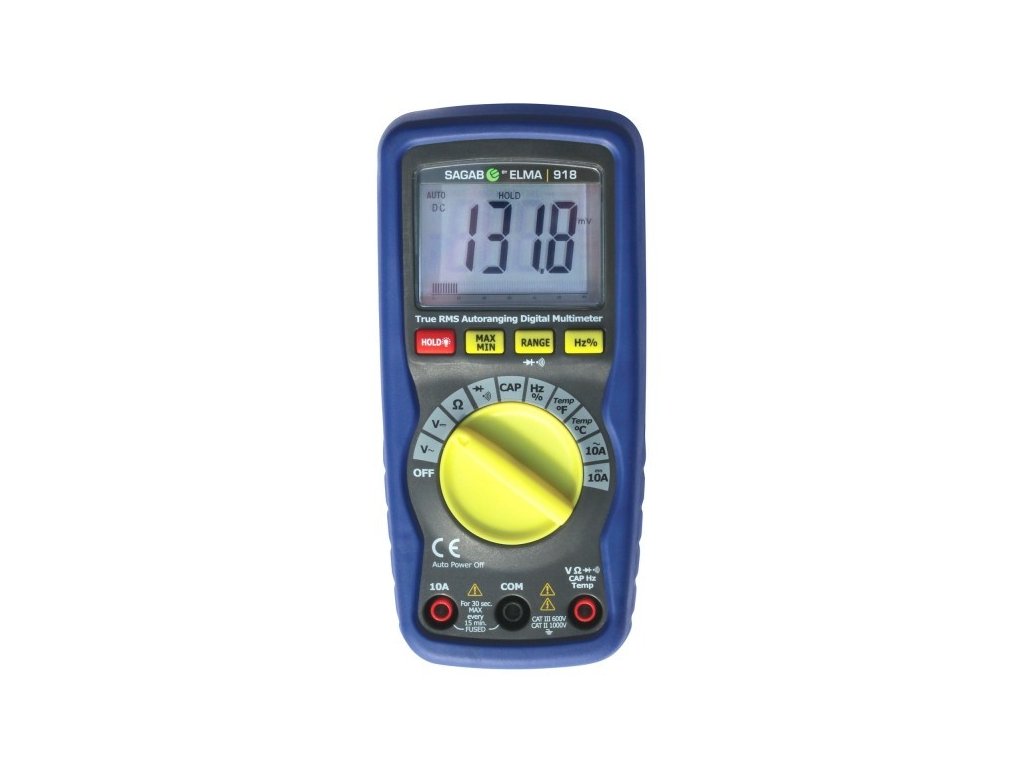 Modrý True RMS multimeter elma 918 s meraním teploty na termočlánku typu K.