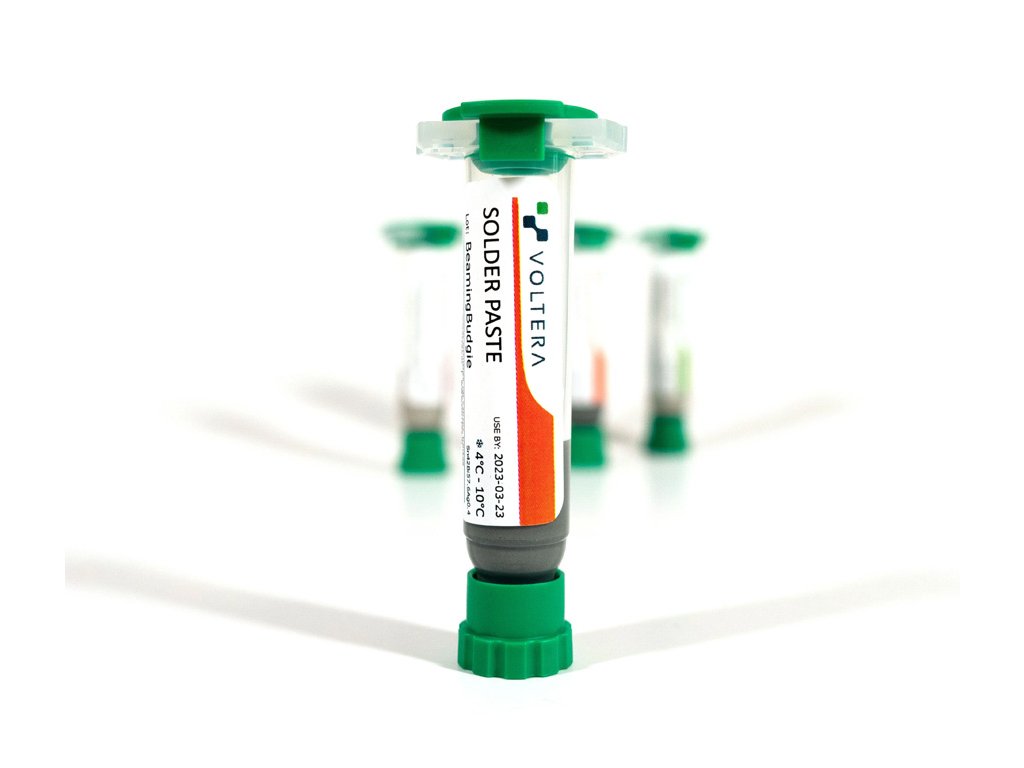 Bezolovnatá nízkoteplotná spájkovacia pasta T4 určená pre dávkovací systém tlačiarne Voltera V-One. Pasta so zliatinou Sn42Bi57.6Ag0.4 je navrhnutá pre presné osadzovanie elektronických súčiastok a umožňuje spoľahlivé reflow spájkovanie pri výrazne nižších teplotách, čím minimalizuje tepelné namáhanie dosky aj citlivých komponentov.