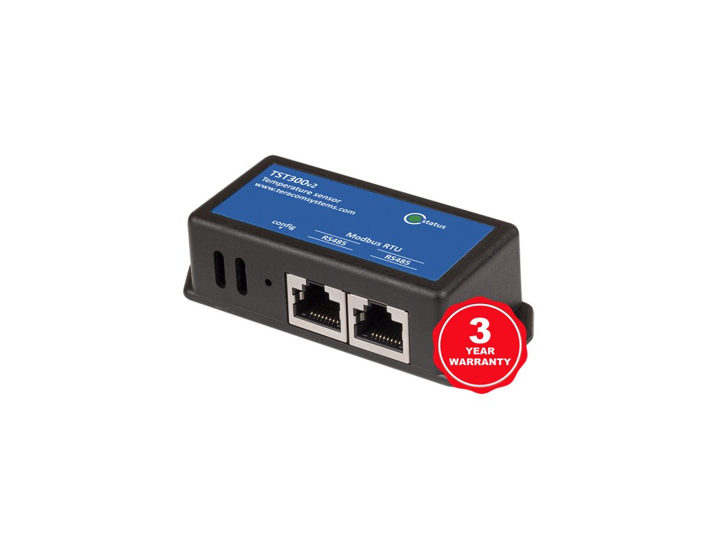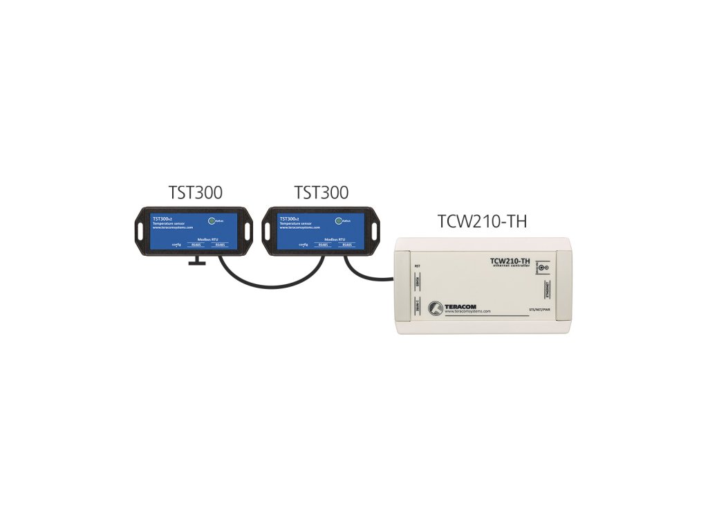 TST300 meria v rozsahu teplôt od 20 to +60°C s presnosťou ±0,13°C. Rozlíšenie ADC je 14 bitov. Snímač s ovládačmi komunikuje zapomoci MODBUS RTU (RS-485) zbernice. Každý snímač má unikátne 64-bitové sériové čislo, teda cez jednu MODBUS zbernicu možete pripojiť niekoľko snímačov. Zapojenie 2x RJ45 cez UTP/FTP patch LAN kábel s podporou Daisy Chain zapojenia.